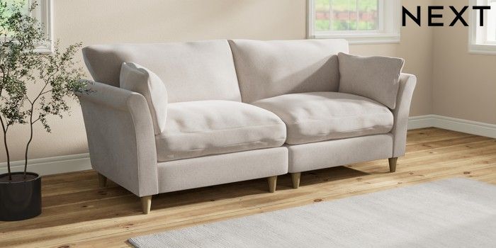 7.3.1 Buy Hartley Relaxed Sit 4 Seater Sofa Chunky Chenille Oyster Low Conical - Light from the Next UK online shop