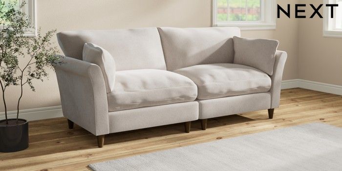 7.3.1 Buy Hartley Relaxed Sit 4 Seater Sofa Chunky Chenille Oyster Low Conical - Mid from the Next UK online shop