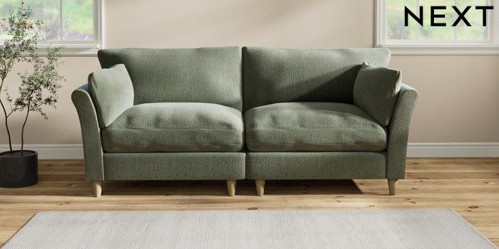 7.2.10 Buy Hartley Relaxed Sit 4 Seater Sofa Chunky Texture Mid Forest Green Low Conical - Light from the Next UK online shop Click here to use our accessible website