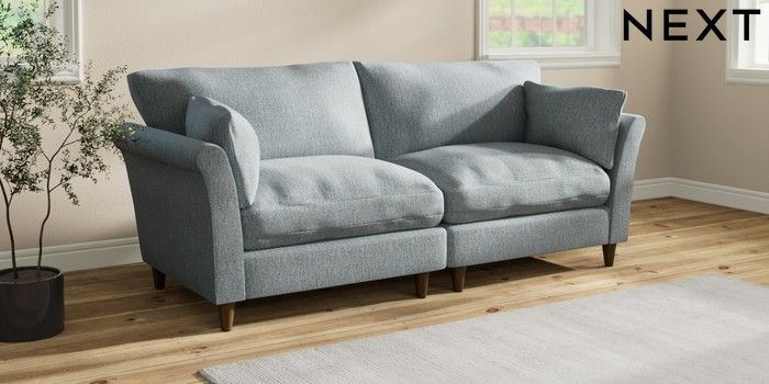7.3.1 Buy Hartley Relaxed Sit 4 Seater Sofa Chunky Weave Mid Blue Low Conical - Mid from the Next UK online shop