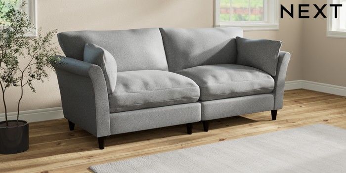 7.3.1 Buy Hartley Relaxed Sit 4 Seater Sofa Chunky Weave Mid Grey Low Conical - Dark from the Next UK online shop