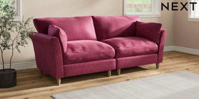 7.3.1 Buy Hartley Relaxed Sit 4 Seater Sofa Cotswold Chenille Dark Raspberry Pink Low Conical - Light from the Next UK online shop
