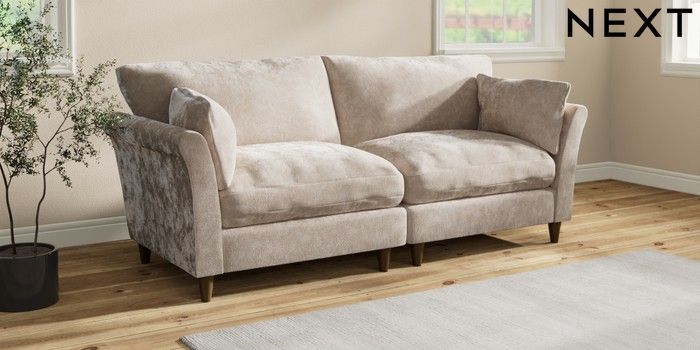 7.3.1 Buy Hartley Relaxed Sit 4 Seater Sofa Distressed Velour Mid Natural Low Conical - Mid from the Next UK online shop