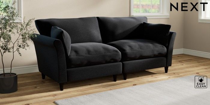 7.3.1 Buy Hartley Relaxed Sit 4 Seater Sofa Fine Chenille Easy Clean Black Low Conical - Dark from the Next UK online shop