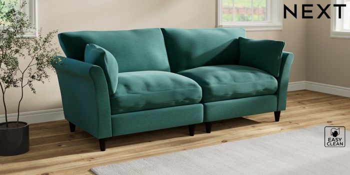 7.3.1 Buy Hartley Relaxed Sit 4 Seater Sofa Fine Chenille Easy Clean Dark Juniper Green Low Conical - Dark from the Next UK online shop
