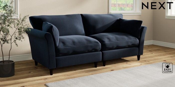 7.3.1 Buy Hartley Relaxed Sit 4 Seater Sofa Fine Chenille Easy Clean Dark Navy Blue Low Conical - Dark from the Next UK online shop