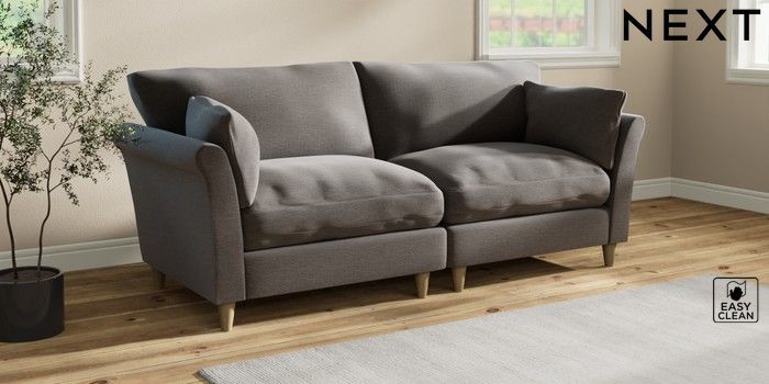 7.3.1 Buy Hartley Relaxed Sit 4 Seater Sofa Fine Chenille Easy Clean Dark Smoke Grey Low Conical - Light from the Next UK online shop
