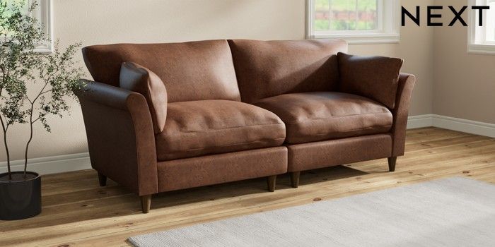 7.3.1 Buy Hartley Relaxed Sit 4 Seater Sofa Monza Faux Leather Easy Clean Chestnut Brown Low Conical - Mid from the Next UK online shop Click here to use our accessible website