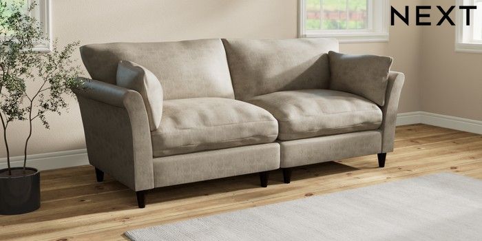 7.3.1 Buy Hartley Relaxed Sit 4 Seater Sofa Monza Faux Leather Easy Clean Mink Brown Low Conical - Dark from the Next UK online shop Click here to use our accessible website