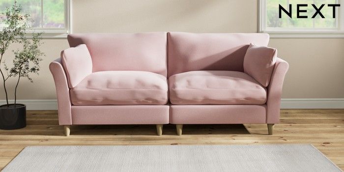 7.2.10 Buy Hartley Relaxed Sit 4 Seater Sofa Natural Mix Light Rose Pink Low Conical - Light from the Next UK online shop Click here to use our accessible website