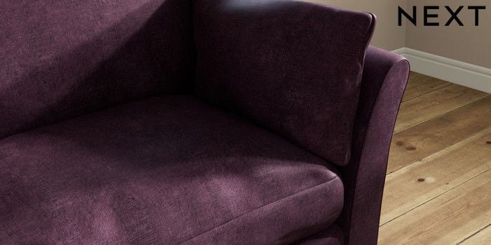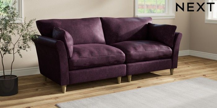 7.3.1 Buy Hartley Relaxed Sit 4 Seater Sofa Plush Chenille Dark Plum Purple Low Conical - Light from the Next UK online shop