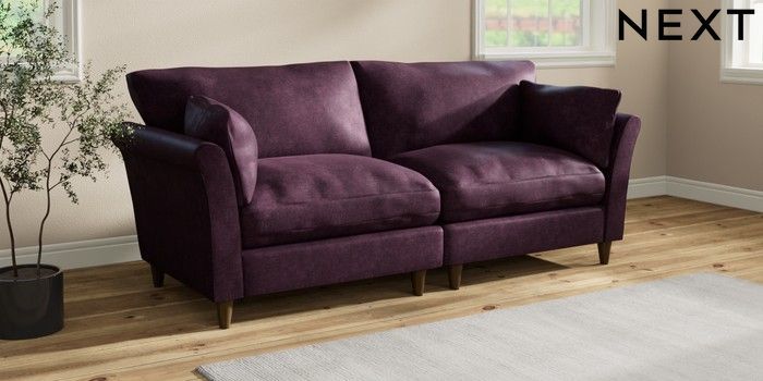 7.3.1 Buy Hartley Relaxed Sit 4 Seater Sofa Plush Chenille Dark Plum Purple Low Conical - Mid from the Next UK online shop