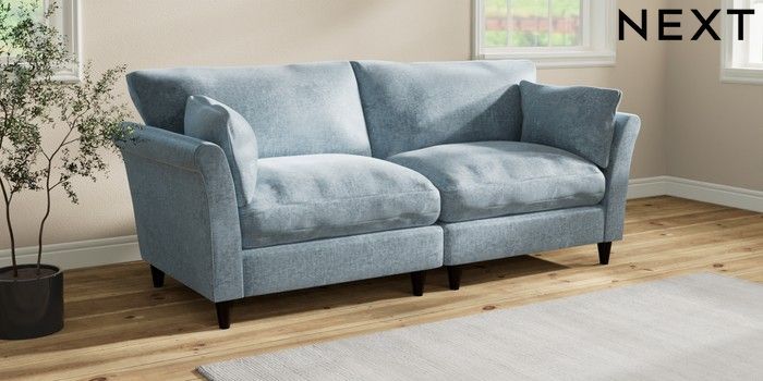 7.3.1 Buy Hartley Relaxed Sit 4 Seater Sofa Plush Chenille Light Blue Low Conical - Dark from the Next UK online shop