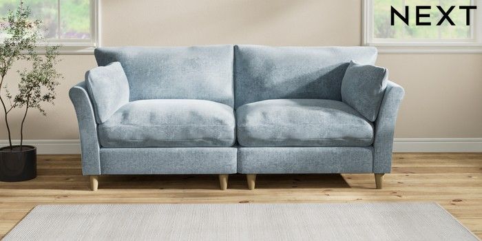 7.2.6 Buy Hartley Relaxed Sit 4 Seater Sofa Plush Chenille Light Blue Low Conical - Light from the Next UK online shop Click here to use our accessible website
