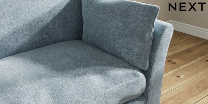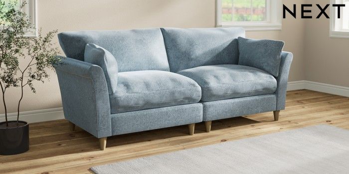 7.3.1 Buy Hartley Relaxed Sit 4 Seater Sofa Plush Chenille Light Blue Low Conical - Light from the Next UK online shop