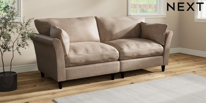 7.3.1 Buy Hartley Relaxed Sit 4 Seater Sofa Plush Chenille Mid Natural Low Conical - Dark from the Next UK online shop