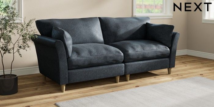 7.3.1 Buy Hartley Relaxed Sit 4 Seater Sofa Plush Chenille Slate Blue Low Conical - Light from the Next UK online shop
