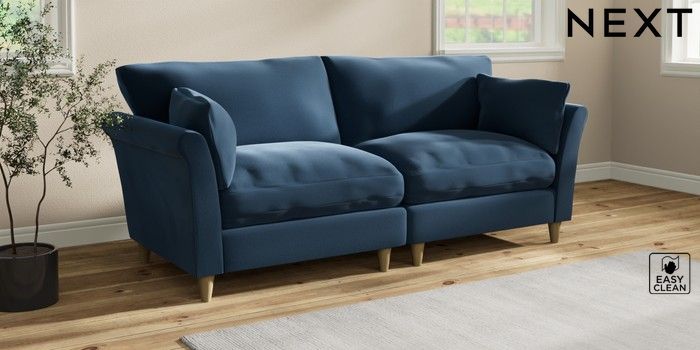 7.3.1 Buy Hartley Relaxed Sit 4 Seater Sofa Plush Velvet Easy Clean Airforce Blue Low Conical - Light from the Next UK online shop