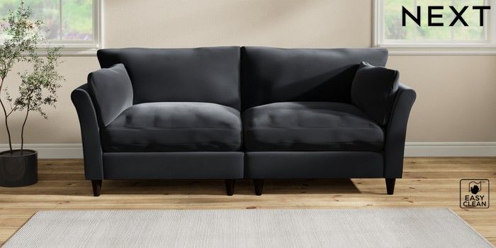 7.3.1 Buy Hartley Relaxed Sit 4 Seater Sofa Plush Velvet Easy Clean Charcoal Grey Low Conical - Dark from the Next UK online shop Click here to use our accessible website