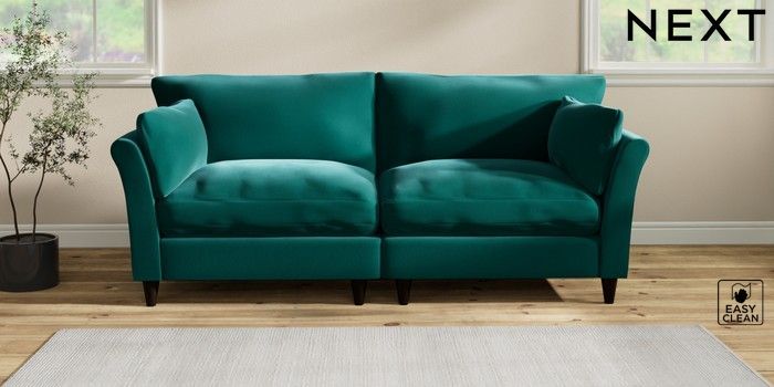 7.3.1 Buy Hartley Relaxed Sit 4 Seater Sofa Plush Velvet Easy Clean Juniper Green Low Conical - Dark from the Next UK online shop Click here to use our accessible website