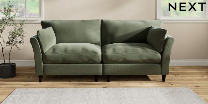 7.2.10 Buy Hartley Relaxed Sit 4 Seater Sofa Relaxed Linen Look Dark Green Low Conical - Dark from the Next UK online shop Click here to use our accessible website