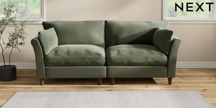 7.2.10 Buy Hartley Relaxed Sit 4 Seater Sofa Relaxed Linen Look Dark Green Low Conical - Mid from the Next UK online shop Click here to use our accessible website