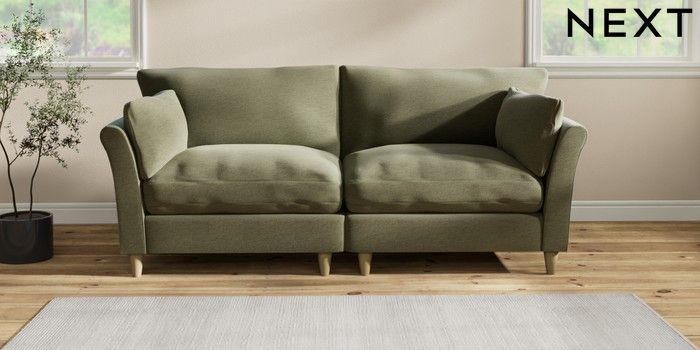 7.2.10 Buy Hartley Relaxed Sit 4 Seater Sofa Ripple Chenille Mid Moss Green Low Conical - Light from the Next UK online shop Click here to use our accessible website
