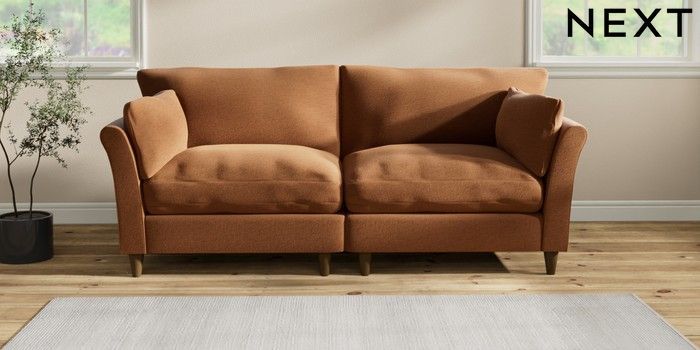 7.2.10 Buy Hartley Relaxed Sit 4 Seater Sofa Ripple Chenille Mid Rust Brown Low Conical - Mid from the Next UK online shop Click here to use our accessible website