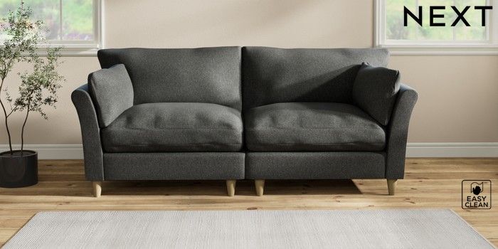 7.2.10 Buy Hartley Relaxed Sit 4 Seater Sofa Tweedy Blend Easy Clean Charcoal Grey Low Conical - Light from the Next UK online shop Click here to use our accessible website