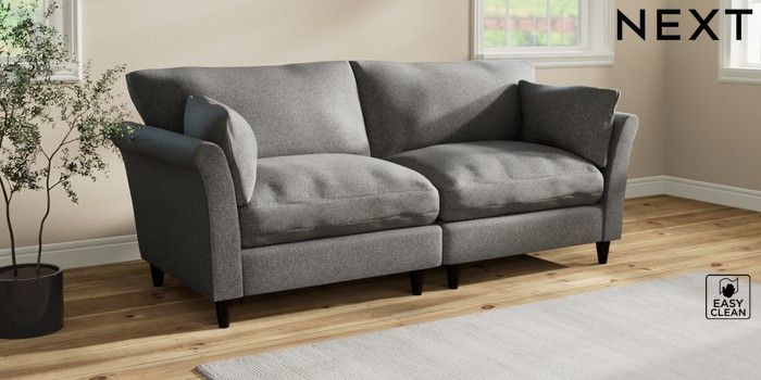 7.3.1 Buy Hartley Relaxed Sit 4 Seater Sofa Tweedy Blend Easy Clean Dark Grey Low Conical - Dark from the Next UK online shop