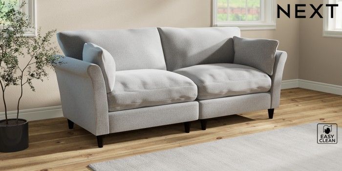 7.3.1 Buy Hartley Relaxed Sit 4 Seater Sofa Tweedy Blend Easy Clean Light Silver Grey Low Conical - Dark from the Next UK online shop