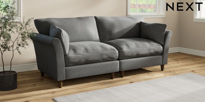 7.3.1 Buy Hartley Relaxed Sit 4 Seater Sofa Tweedy Chenille Dark Grey Low Conical - Mid from the Next UK online shop