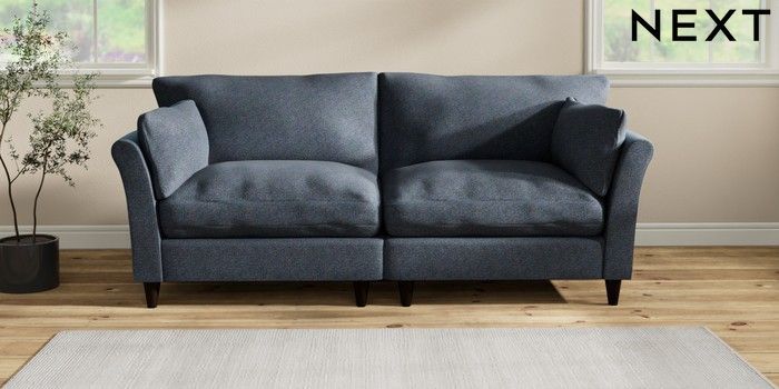 7.2.10 Buy Hartley Relaxed Sit 4 Seater Sofa Tweedy Chenille Navy Blue Low Conical - Dark from the Next UK online shop Click here to use our accessible website