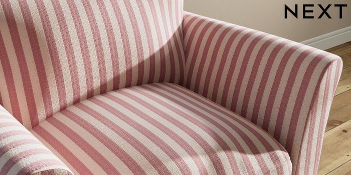 7.3.1 Buy Hartley Relaxed Sit Armchair Bold Chenille Stripe Dark Pink Low Conical - Light from the Next UK online shop