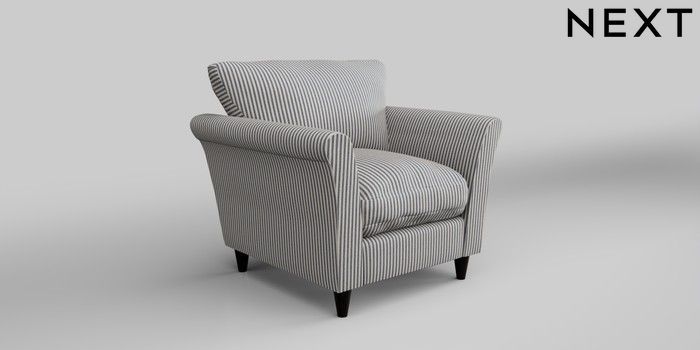 6.12.1 Buy Hartley Relaxed Sit Armchair Chenille Stripe Slate Blue Low Conical - Dark from the Next UK online shop Click here to use our accessible website
