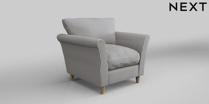6.12.1 Buy Hartley Relaxed Sit Armchair Chenille Stripe Slate Blue Low Conical - Light from the Next UK online shop Click here to use our accessible website