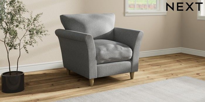7.3.1 Buy Hartley Relaxed Sit Armchair Chunky Weave Mid Grey Low Conical - Light from the Next UK online shop