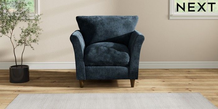 7.2.10 Buy Hartley Relaxed Sit Armchair Distressed Velour Midnight Blue Low Conical - Mid from the Next UK online shop Click here to use our accessible website