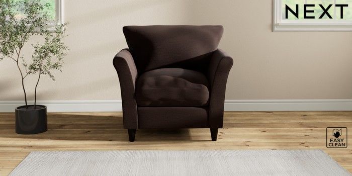 7.2.10 Buy Hartley Relaxed Sit Armchair Fine Chenille Easy Clean Chocolate Brown Low Conical - Dark from the Next UK online shop Click here to use our accessible website