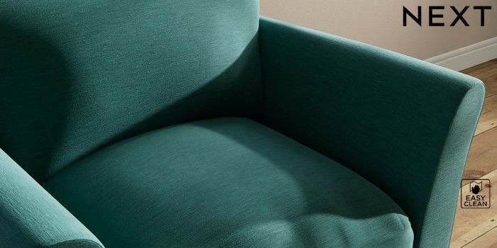 7.3.1 Buy Hartley Relaxed Sit Armchair Fine Chenille Easy Clean Dark Juniper Green Low Conical - Light from the Next UK online shop