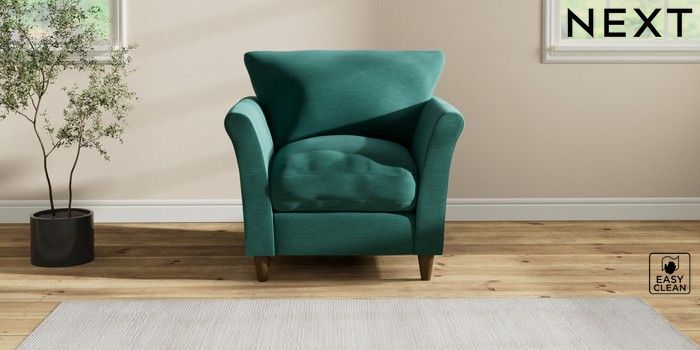 7.2.10 Buy Hartley Relaxed Sit Armchair Fine Chenille Easy Clean Dark Juniper Green Low Conical - Mid from the Next UK online shop Click here to use our accessible website