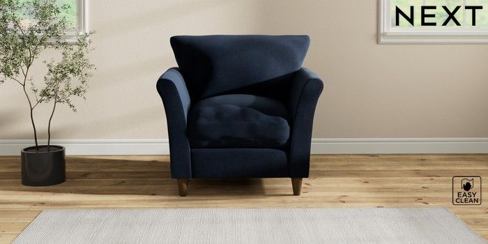 7.2.10 Buy Hartley Relaxed Sit Armchair Fine Chenille Easy Clean Dark Navy Blue Low Conical - Mid from the Next UK online shop Click here to use our accessible website