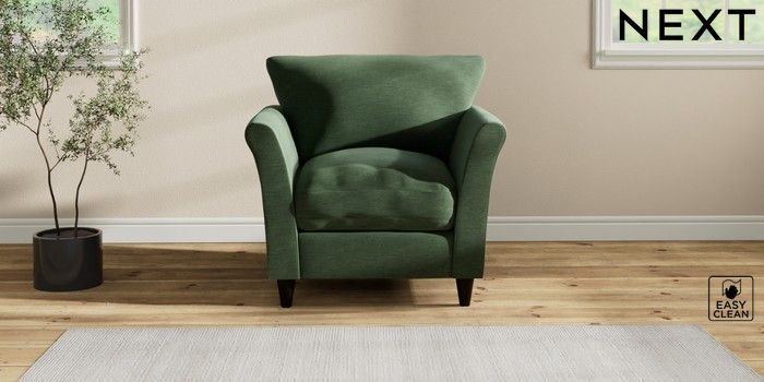 7.2.10 Buy Hartley Relaxed Sit Armchair Fine Chenille Easy Clean Mid Khaki Green Low Conical - Dark from the Next UK online shop Click here to use our accessible website