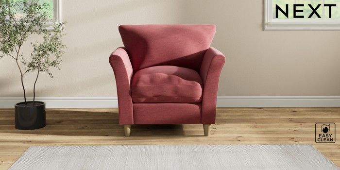 7.2.10 Buy Hartley Relaxed Sit Armchair Fine Chenille Easy Clean Mid Pink Low Conical - Light from the Next UK online shop Click here to use our accessible website