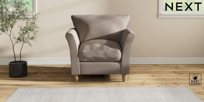 7.2.10 Buy Hartley Relaxed Sit Armchair Fine Chenille Easy Clean Mid Taupe Brown Low Conical - Light from the Next UK online shop Click here to use our accessible website