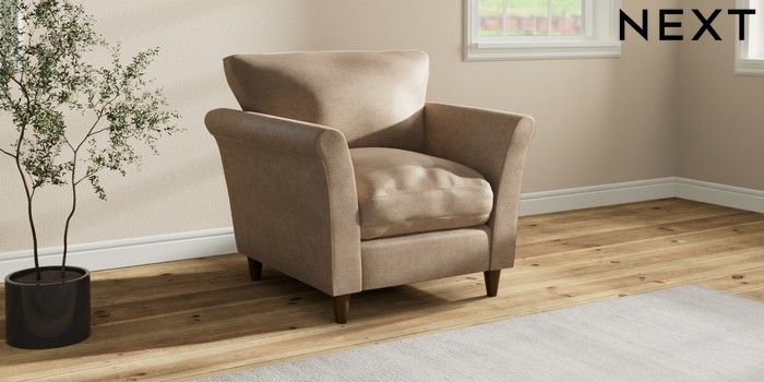7.3.1 Buy Hartley Relaxed Sit Armchair Luxe Chenille Mid Camel Beige Low Conical - Mid from the Next UK online shop