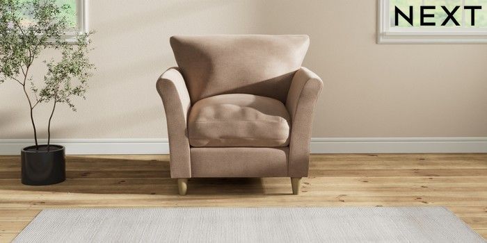 7.2.10 Buy Hartley Relaxed Sit Armchair Luxe Chenille Mid Natural Low Conical - Light from the Next UK online shop Click here to use our accessible website
