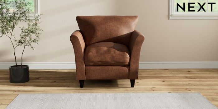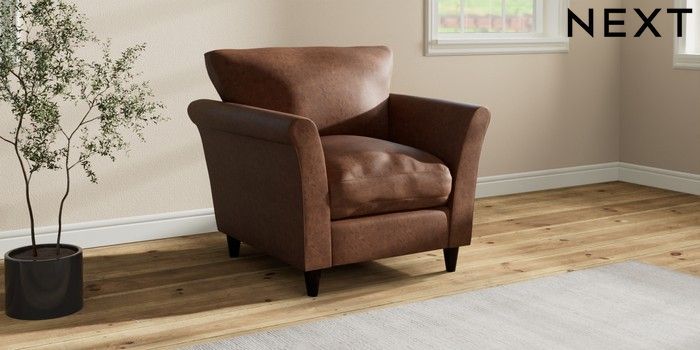 7.3.1 Buy Hartley Relaxed Sit Armchair Monza Faux Leather Easy Clean Chestnut Brown Low Conical - Dark from the Next UK online shop Click here to use our accessible website