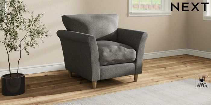 7.3.1 Buy Hartley Relaxed Sit Armchair Tweedy Blend Easy Clean Dark Grey Low Conical - Light from the Next UK online shop Click here to use our accessible website