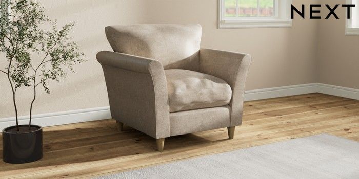 7.3.1 Buy Hartley Relaxed Sit Armchair Plush Chenille Light Natural Low Conical - Light from the Next UK online shop